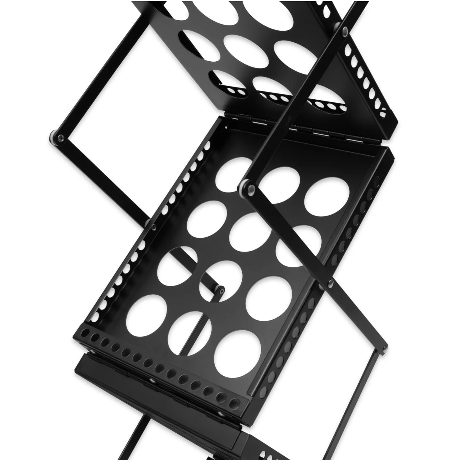 A simple design, metal construction and small Dydis after folding guarantee the quick assembly of this produktas, stability and easy transportation. The dark color, in turn, gives it a very decorous look.