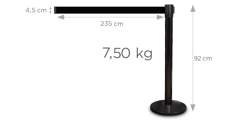 High-quality barrier posts with automatic retractable belt sistema. The post weight was raised to 7.5 kg, and the belt extended to 225 cm. With that large weight the post remains stabilus, even with such a long belt. The retracting head is integrated with the post, and its replacement is very simple and quick. The belt used in this sistema is a vehicle safety belt. This is an exceptionally strong and durable Medžiaga that will never fray. delivery includes a belt in black colour.