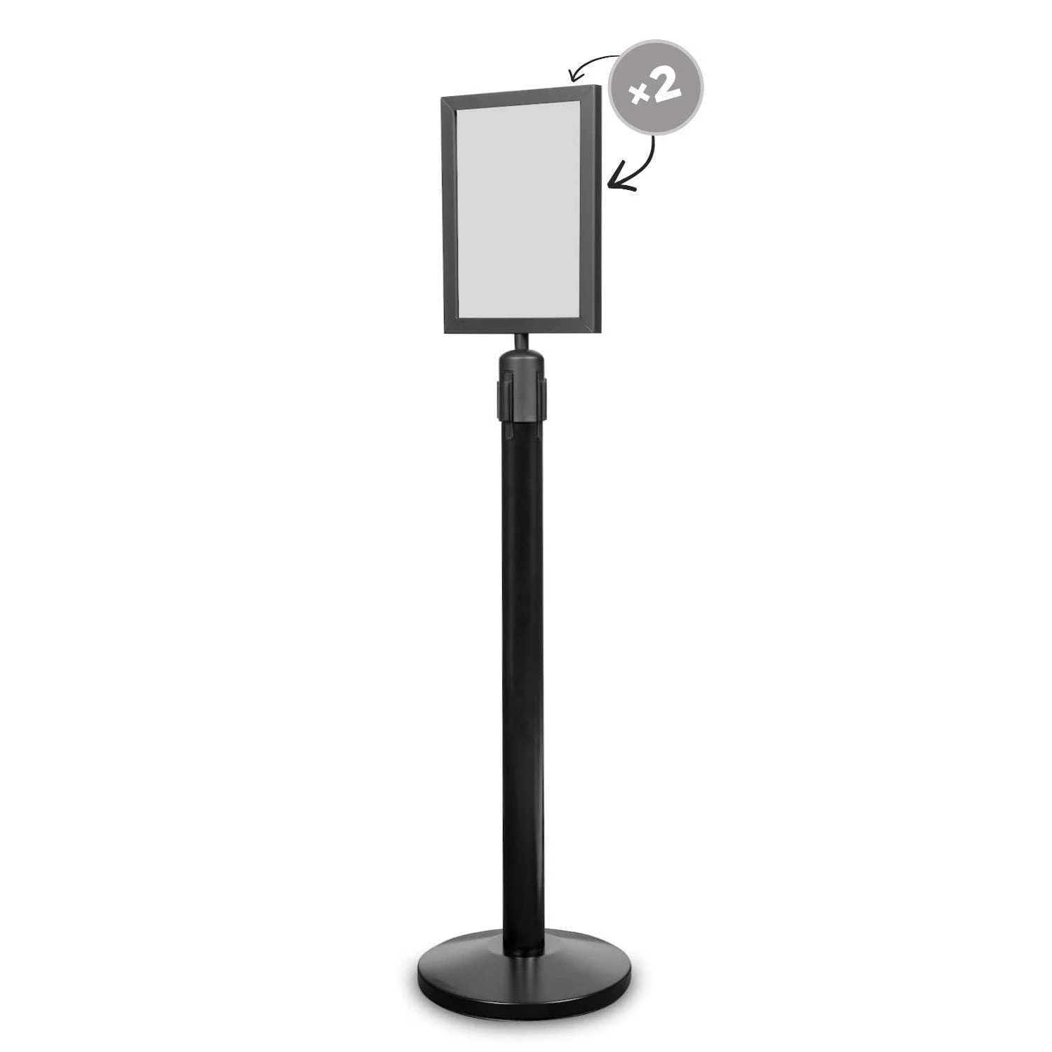 This set includes: base for the post + post with a retracting head (black belt). The produktas is delivered in two separate boxes: one for the post with retracting head and one for the base.