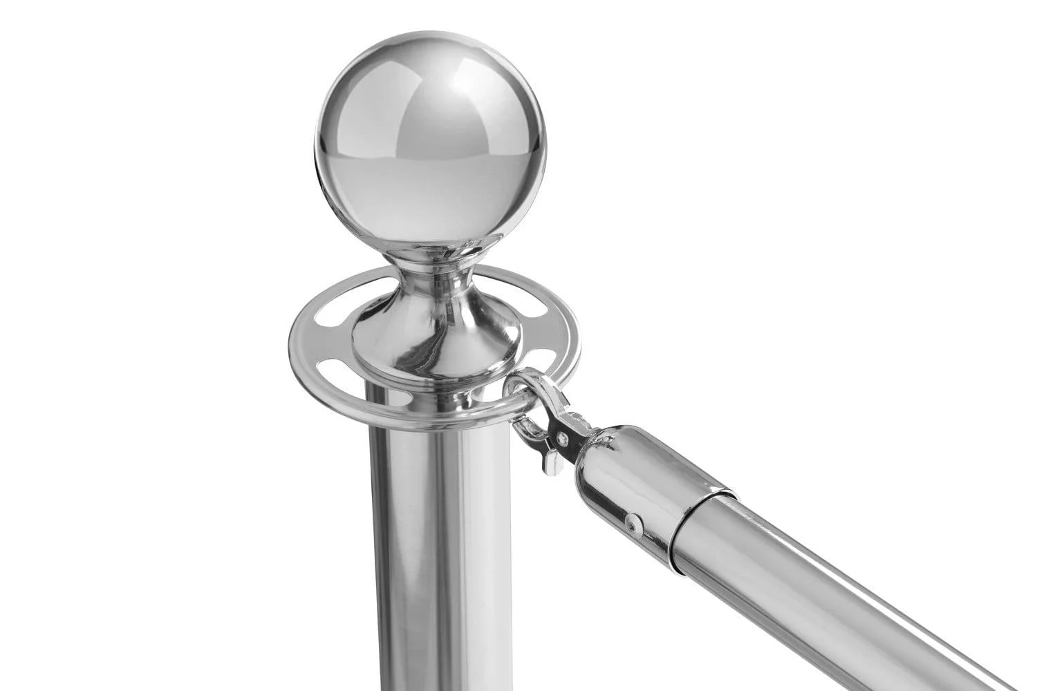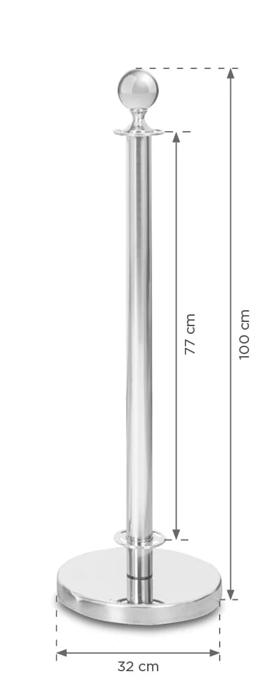 Premium klasės quality post made of stainless plienas. The solid construction guarantees the stability of this produktas and the chrome color gives it a very decorous look. The post can be an excellent tool for separating places inaccessible to guests. It is also part of the Cafeteria Set, which enables to create a separate space in a restaurant, cafe, hotel or store.