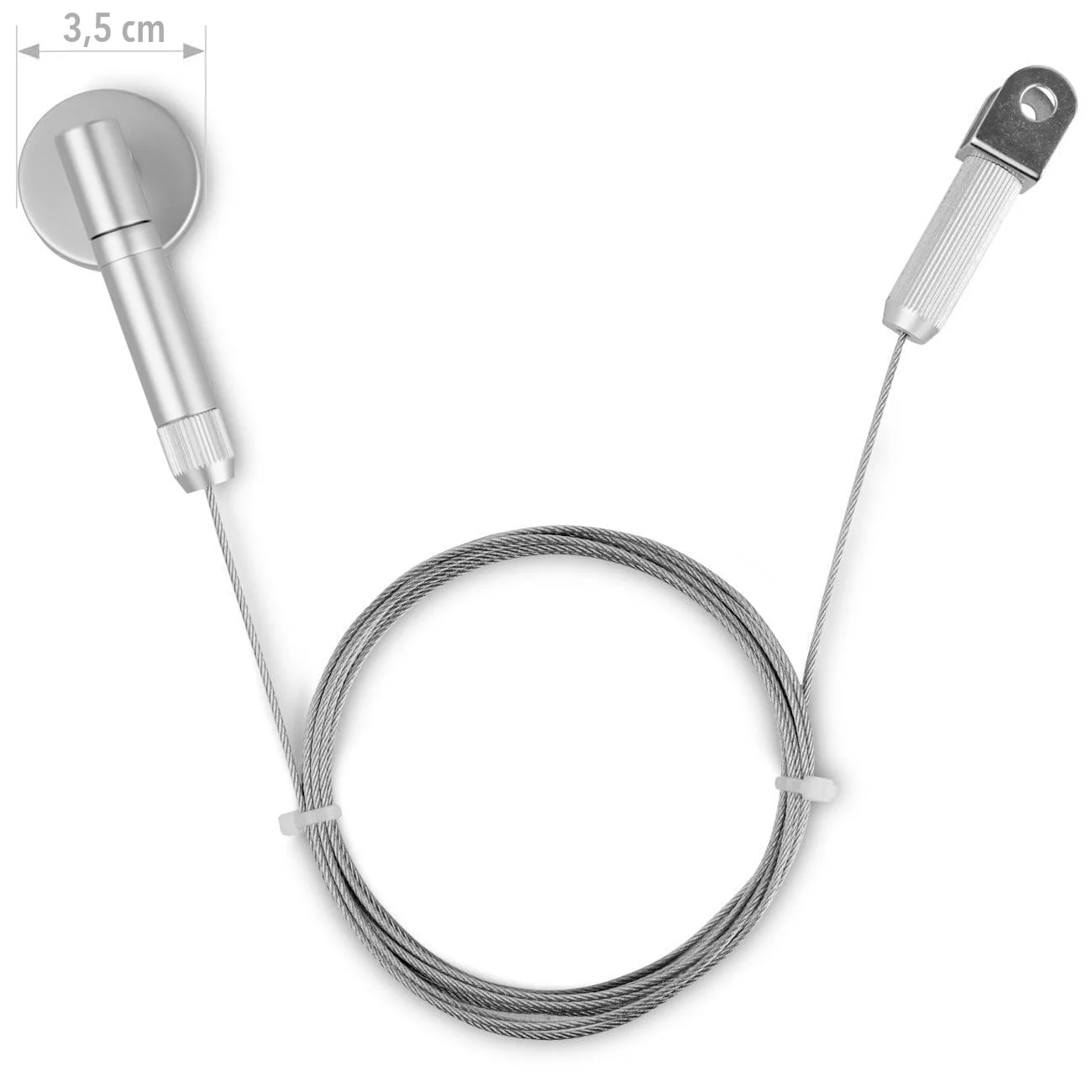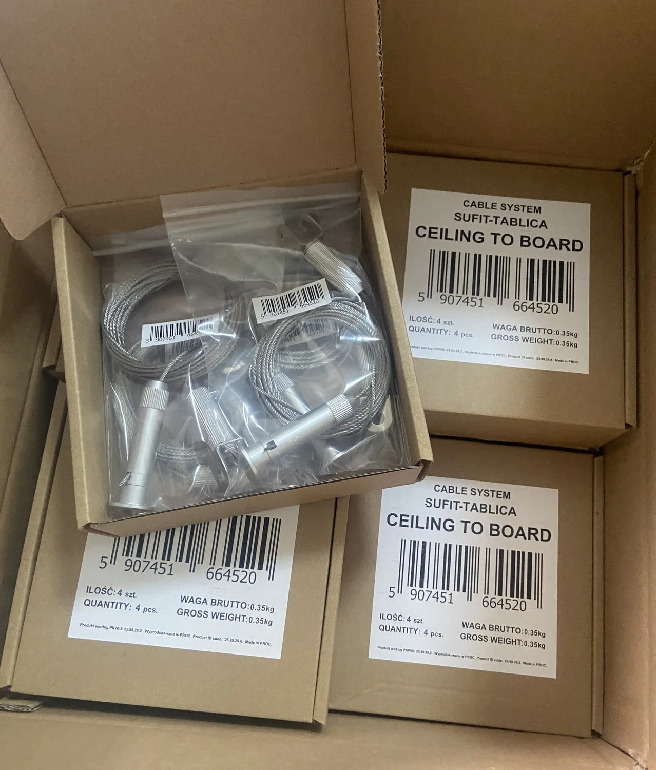 ROD sistemas are a popular solution for hanging reklama and information boards. Minimalistic and elegant appearance ensures an aesthetic final effect of the mounted board. The ropes are made of high quality 1.5 mm thick plienas. The rope has an option of length adjustment.