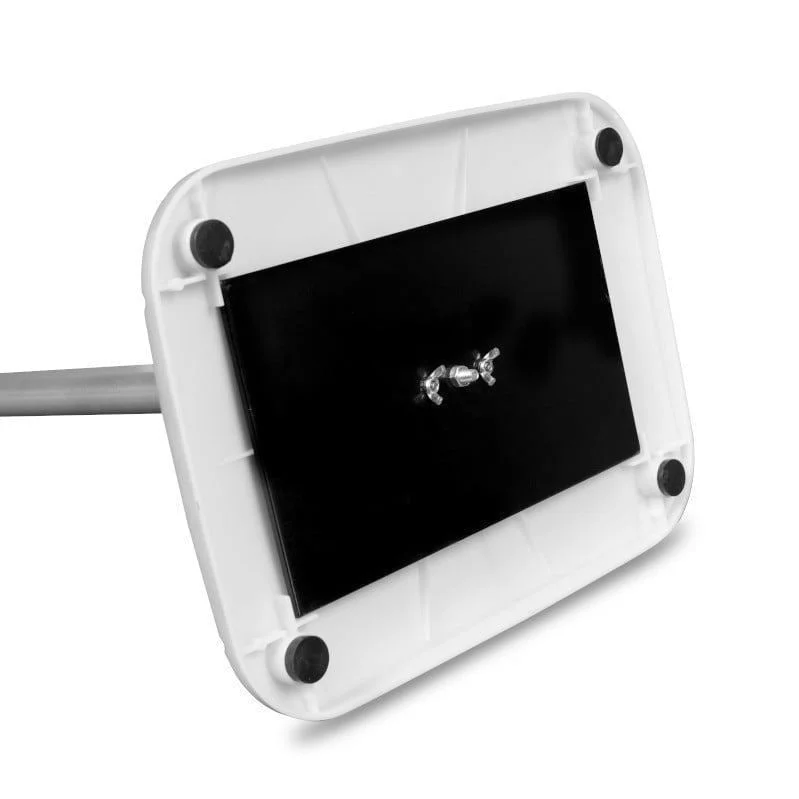An exceptionally stylish and visually attractive snap frame stand intended for such items as restaurant menu, direction indicator, information board etc. Replacing the poster takes a few seconds and works as a snap frame sistema. The construction is made of stylish anoduotas aliuminis. The base is weighted with a metal plate with a plastic cover, allowing to wash the base if soiled.