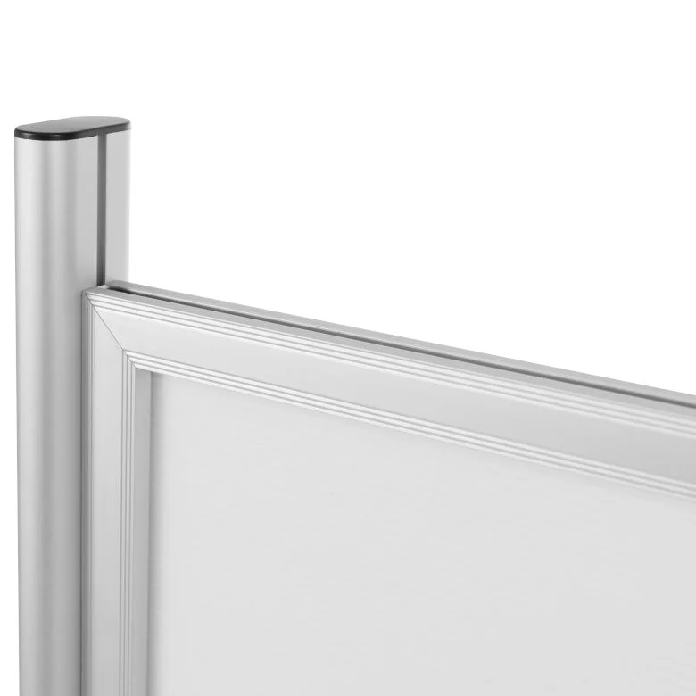 Double-sided Info stand stand, which will work perfectly in practically any public space. Made of durable aluminum, additionally very stabilus. Its undoubted advantage is the very easy replacement of graphics via a sliding panel.