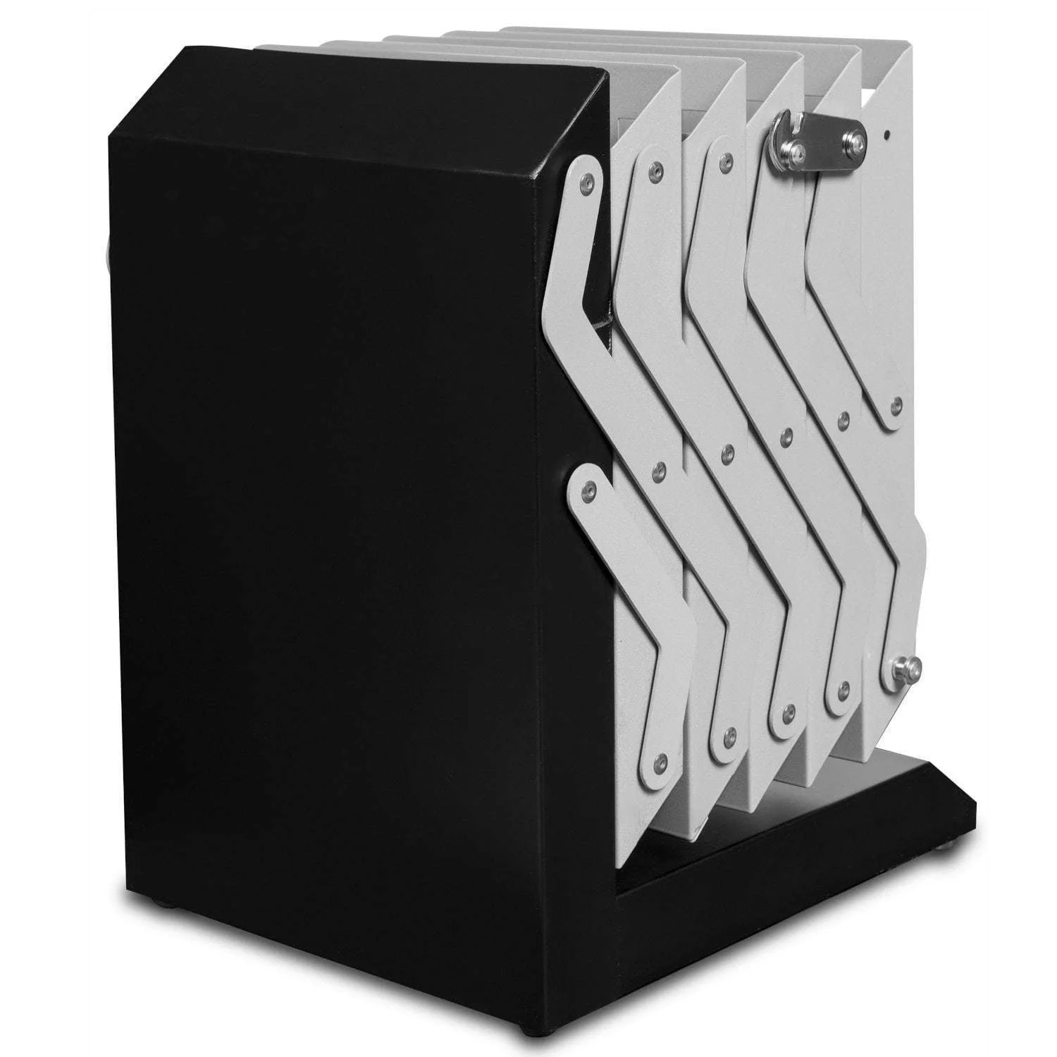 The Lincoln brochure holder is extremely durable and strong stand. Entirely made of metal, powder coated gray and black. It folds to small dimensions. The set includes also a transport krepšys. Stand designed for catalogs and brochures in A4 format.