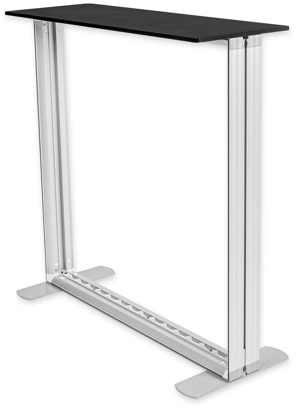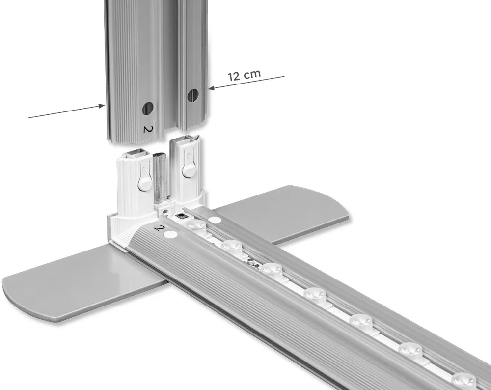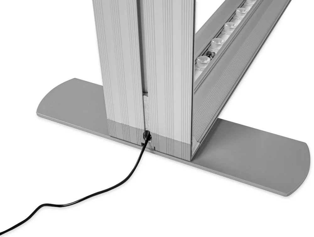 Ideali LUMIX™ sistemos dalis. Dvipusis stendas su plačiu aliuminio profiliu (12 cm) ir integruotu LED apšvietimu. Spauda tvirtinama silikonine juostele, o surinkimui nereikia įrankių – tai dar keli šio produkto privalumai.