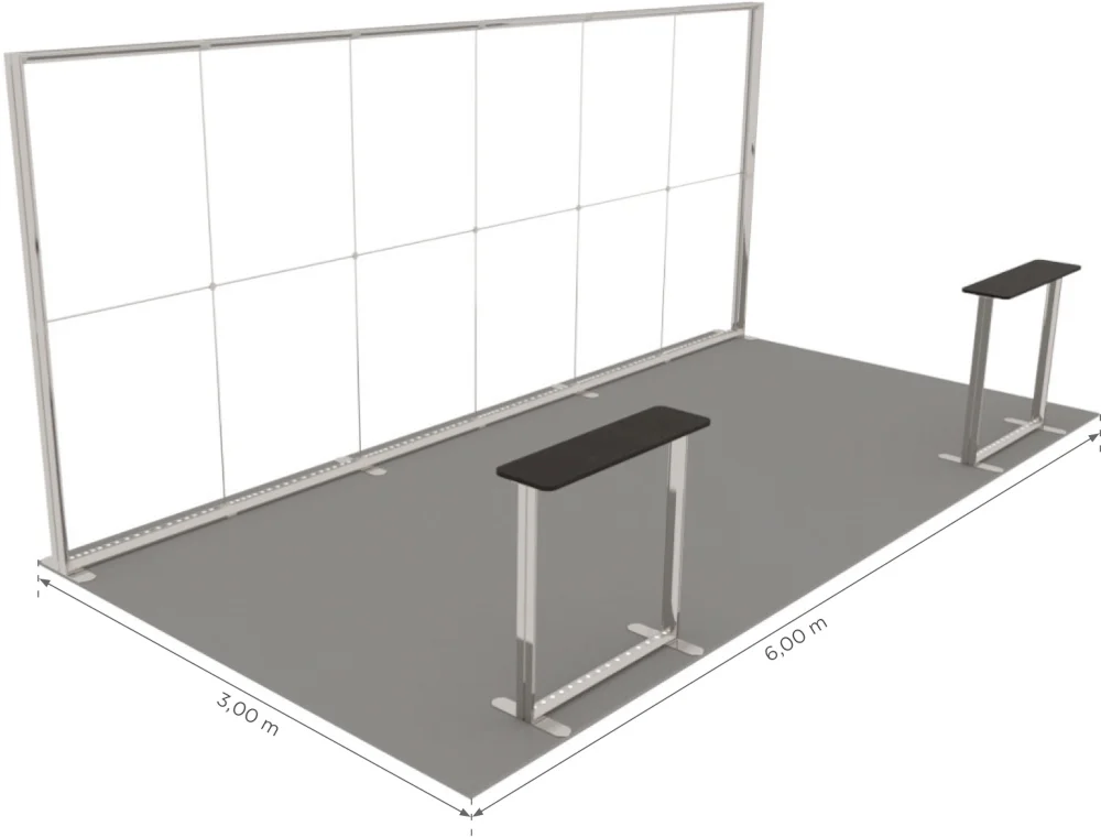 PARODŲ STENDAS 18 m² (6×3) PUSIASALIS – KOMPLEKTO SUDĖTIS: