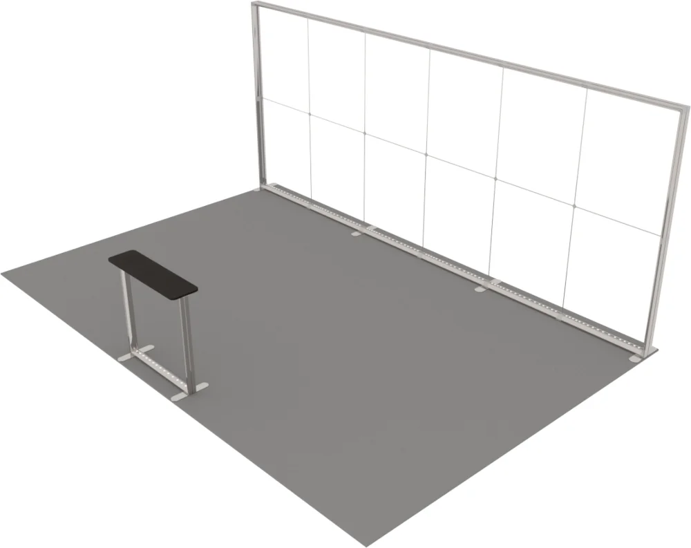 LUMIX™ exhibition booth 24 m² (6×4) peninsula – 1 counter