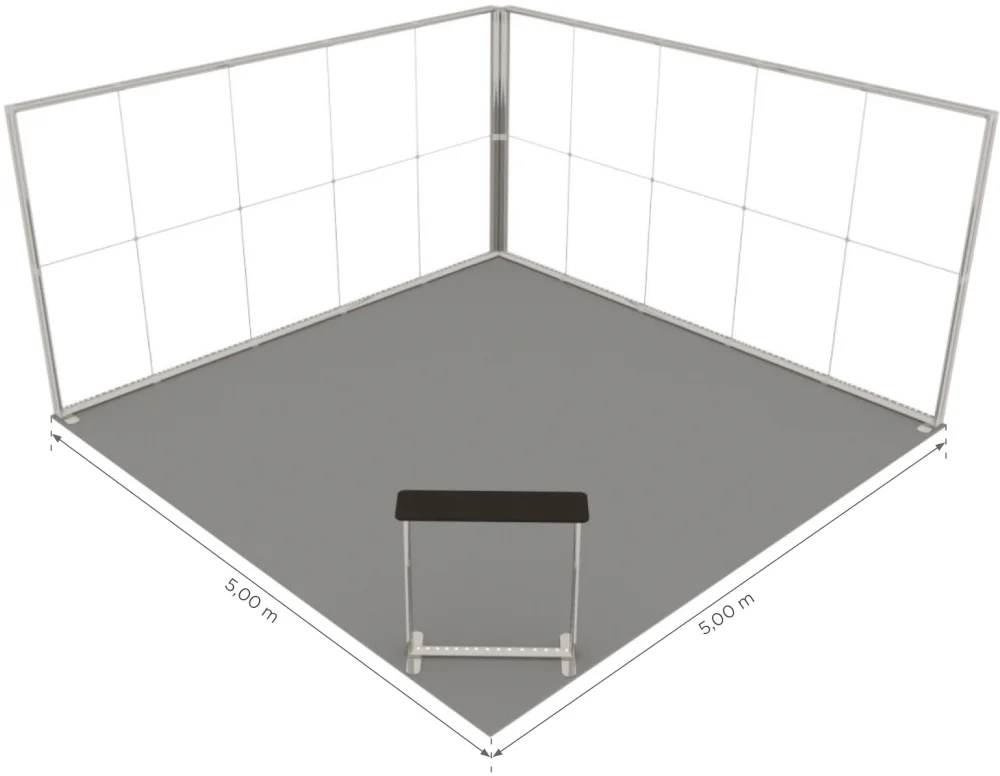 PARODŲ STENDAI 25 M² (5X5) KAMPINIS – KOMPLEKTO SUDĖTIS: