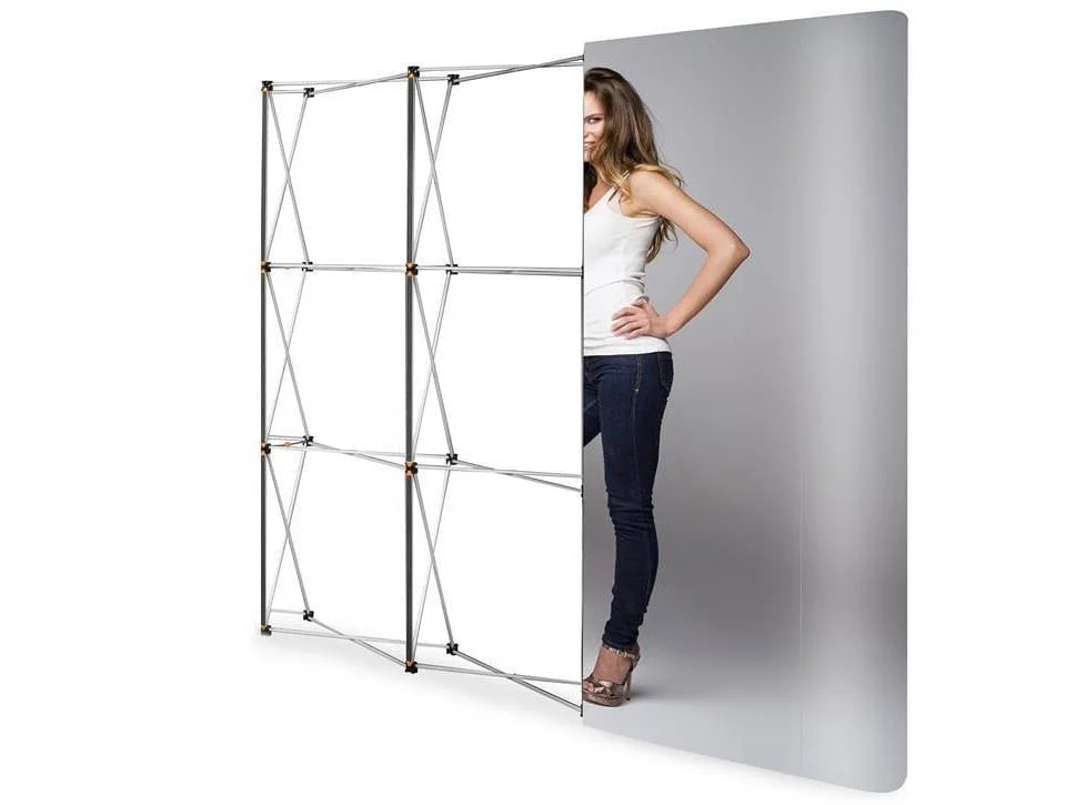 The „pop up” mechanism guarantees express unfolding of the wall frame. However, unlike Standartiniai models, the installation of the construction bars and partial assembly of PVC panels is based on magnets. Thanks to the special fixing of the PVC panels, the invisible hooks on the graphic side is another advantage of the offered produktas. The small Dydis after folding the wall facilitates transport and storage of the entire sistema.