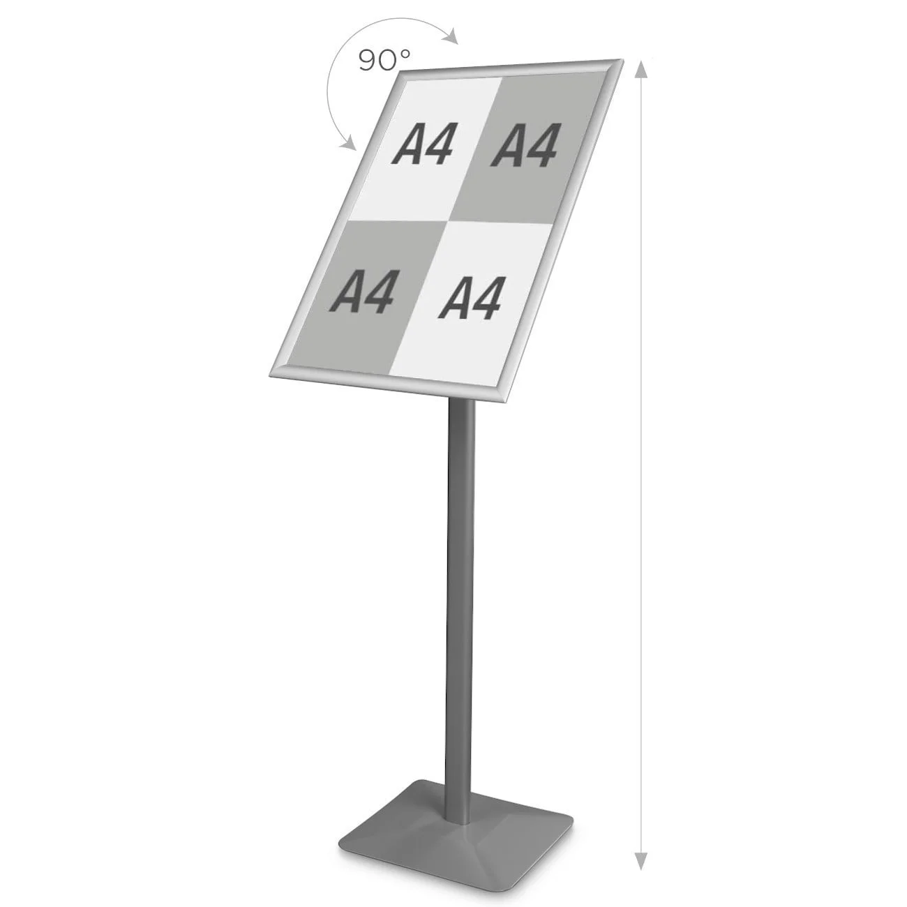Very elegant info stand, which base is made of plienas. Thanks to that it’s very stabilus and it’s perfect for outside area. The stand is designed, among others for restaurant menu, directions, pateikimas of information boards, etc. The poster is replaced on the basis of snap frame.