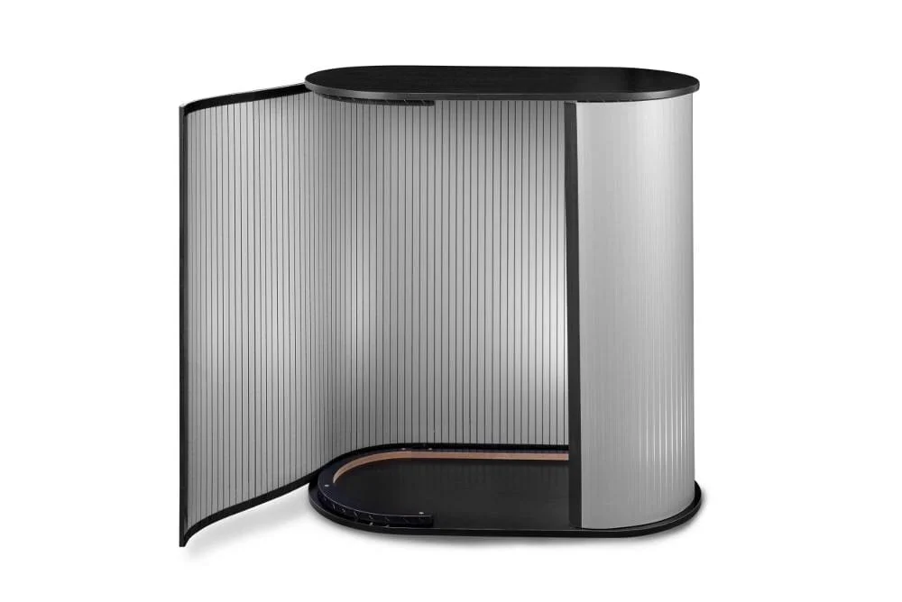 The walls of this sistema are made of cellular PVC, mounted to the tabletop and base with velcro straps. Thanks to the simple design, assembling and disassembling does not require tools and literally takes a few seconds. High quality, stability and long life of this counter are ensured by a wooden base and strong, wooden table top.