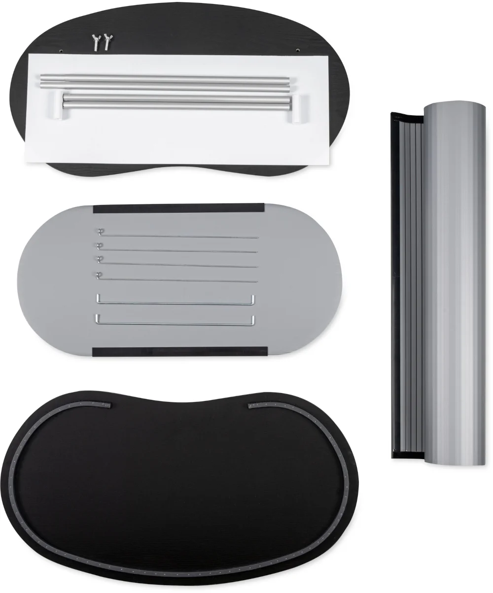 Rinkinį sudaro: in transport krepšys – wooden counter top, wooden base, plastic shelf, topper; in transport tube – PVC panel, 4 hooks and 2 shelf support brackets.