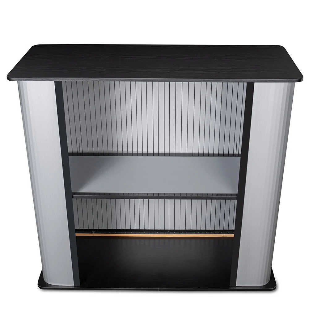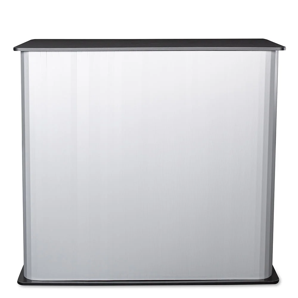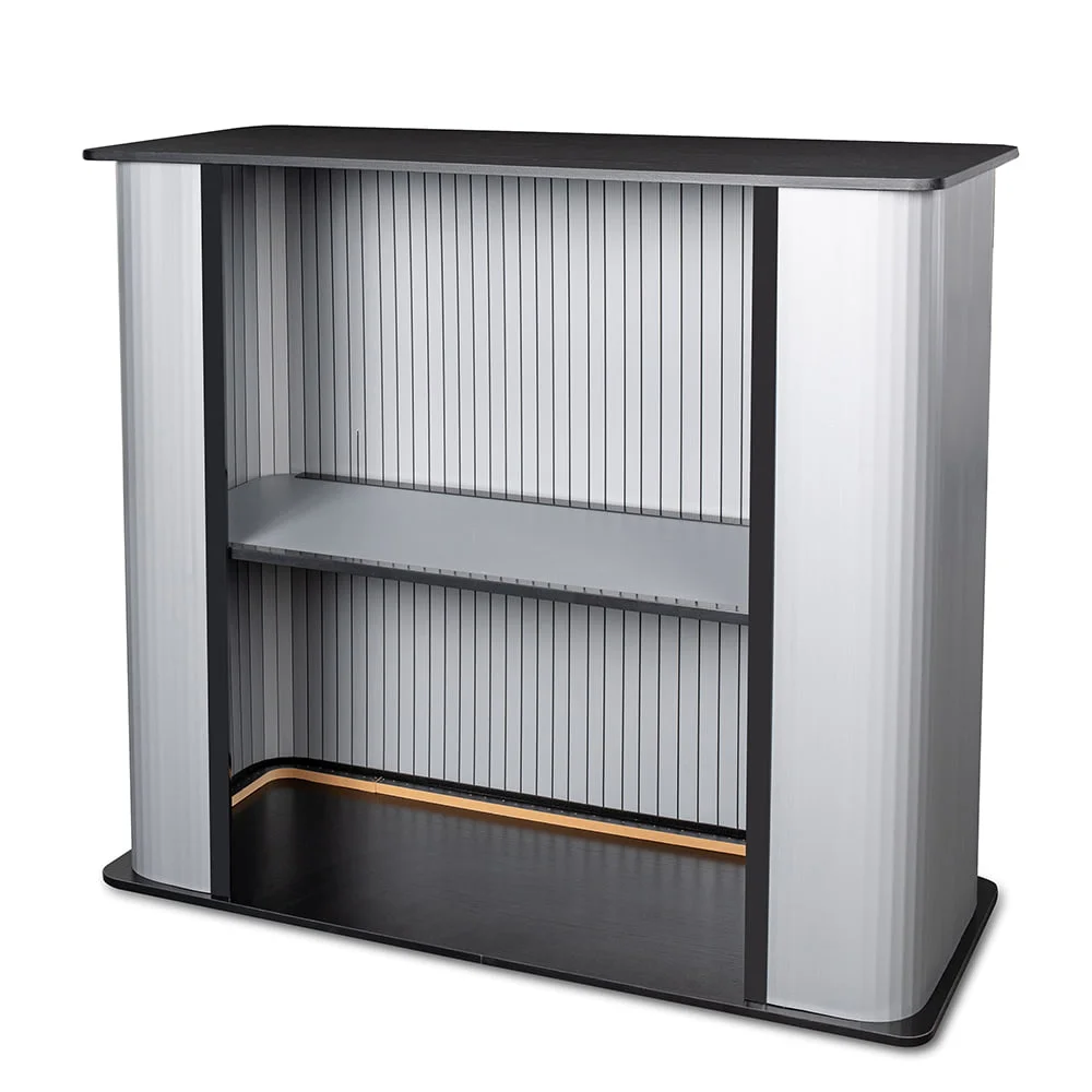The walls of this sistema are made of cellular PVC, mounted to the tabletop and base with velcro straps. Thanks to the simple design, assembling and disassembling does not require tools and literally takes a few seconds. High quality, stability and long life of this counter are ensured by a wooden base and strong, wooden table top.