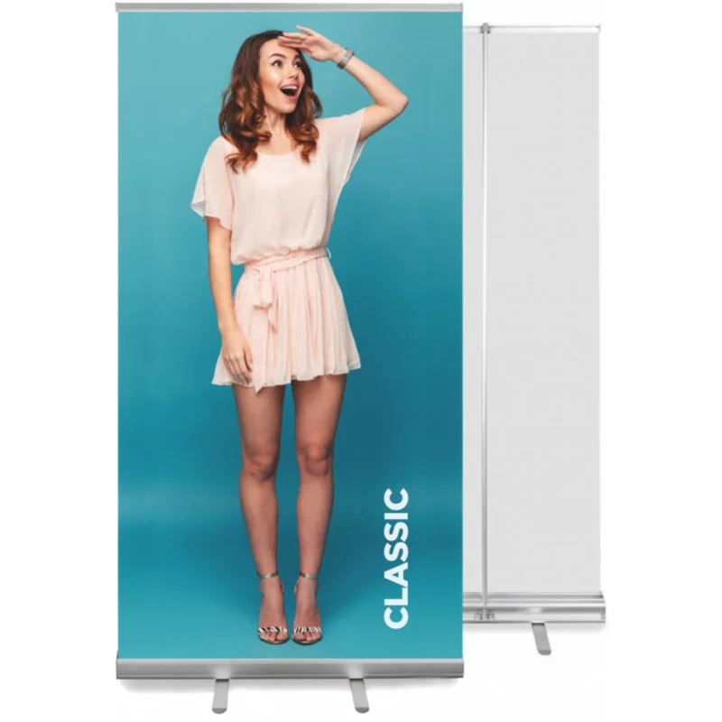 Roll up Classic yra jaunesnysis gerai žinomo ir populiaraus Standartinio modelio brolis. Anoduoto aliuminio kasetė užtikrina ilgą produkto tarnavimo laiką. Galinė plokštė apsaugo nuo kasetės pasisukimo, o stiebo stabilizatorius garantuoja stabilų maketo pateikimą.