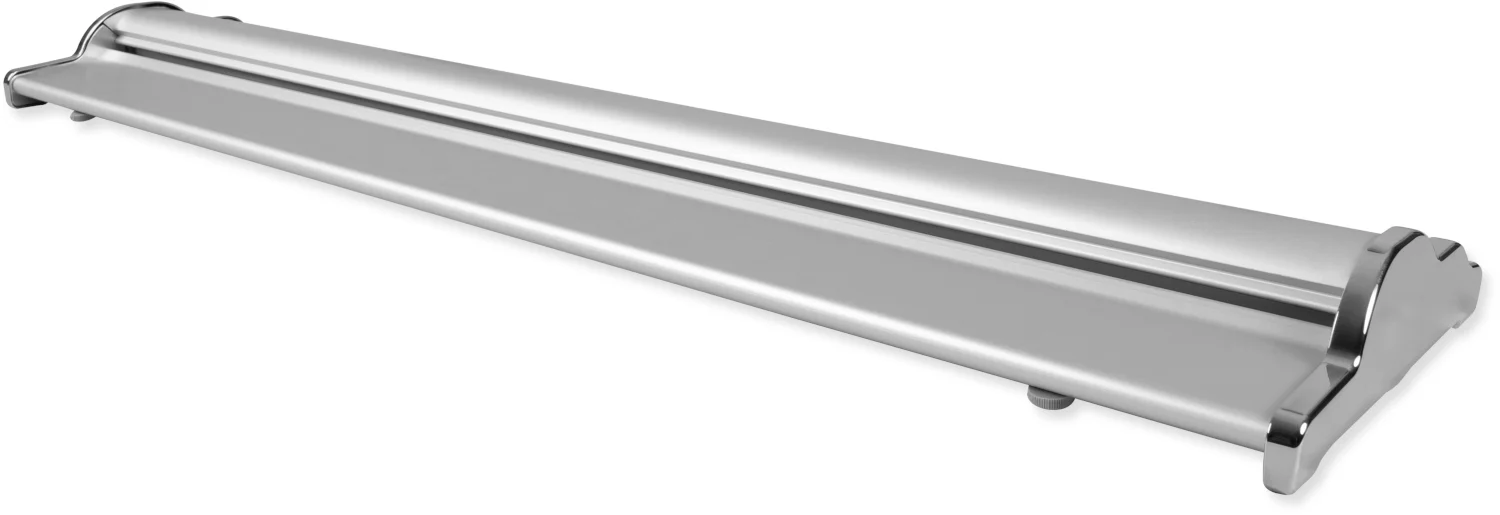 Roll up stendas su unikaliu jūros bangos formos dizainu, aprūpintas grafikos keitimo sistema ir reguliuojamu stiebu.