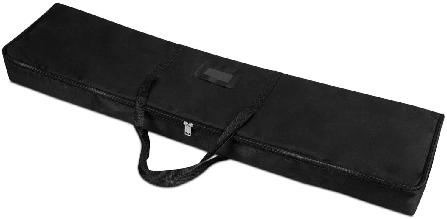 Roll up stendas supakuotas į paminkštintą transportavimo krepšį su ilgu užtrauktuku, kas žymiai palengvina jo laikymą ir transportavimą.