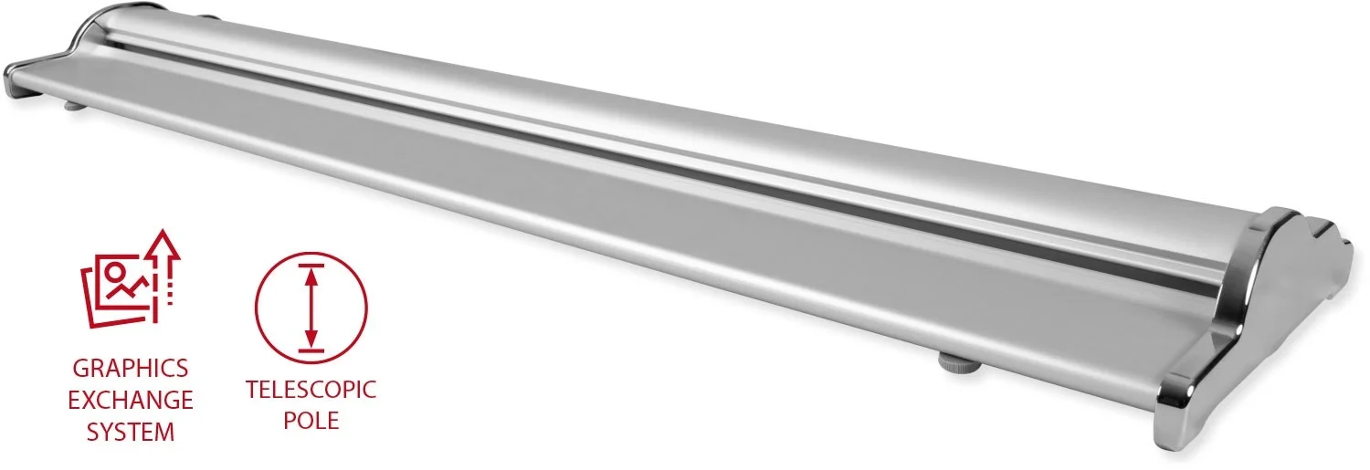 Roll up Wave 150×220 – telescopic pole, graphics exchange system stendas