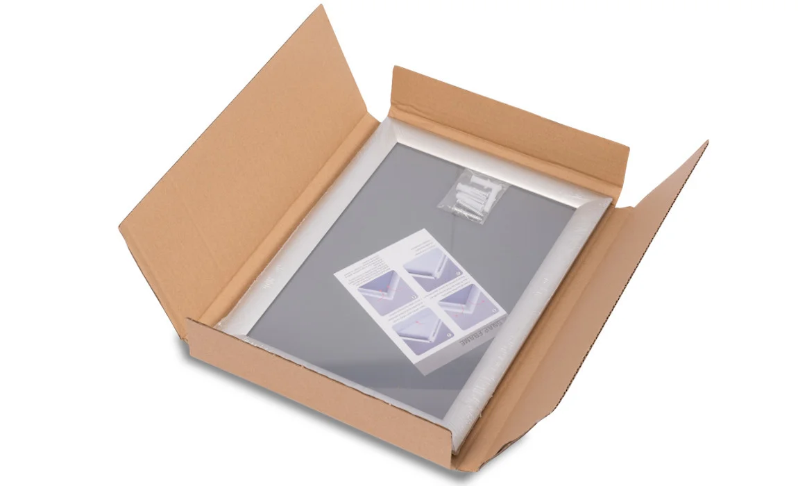 This set includes: snap frame packed in an individual carton box and a set of dowels (4 vnt.) and mounting screws.