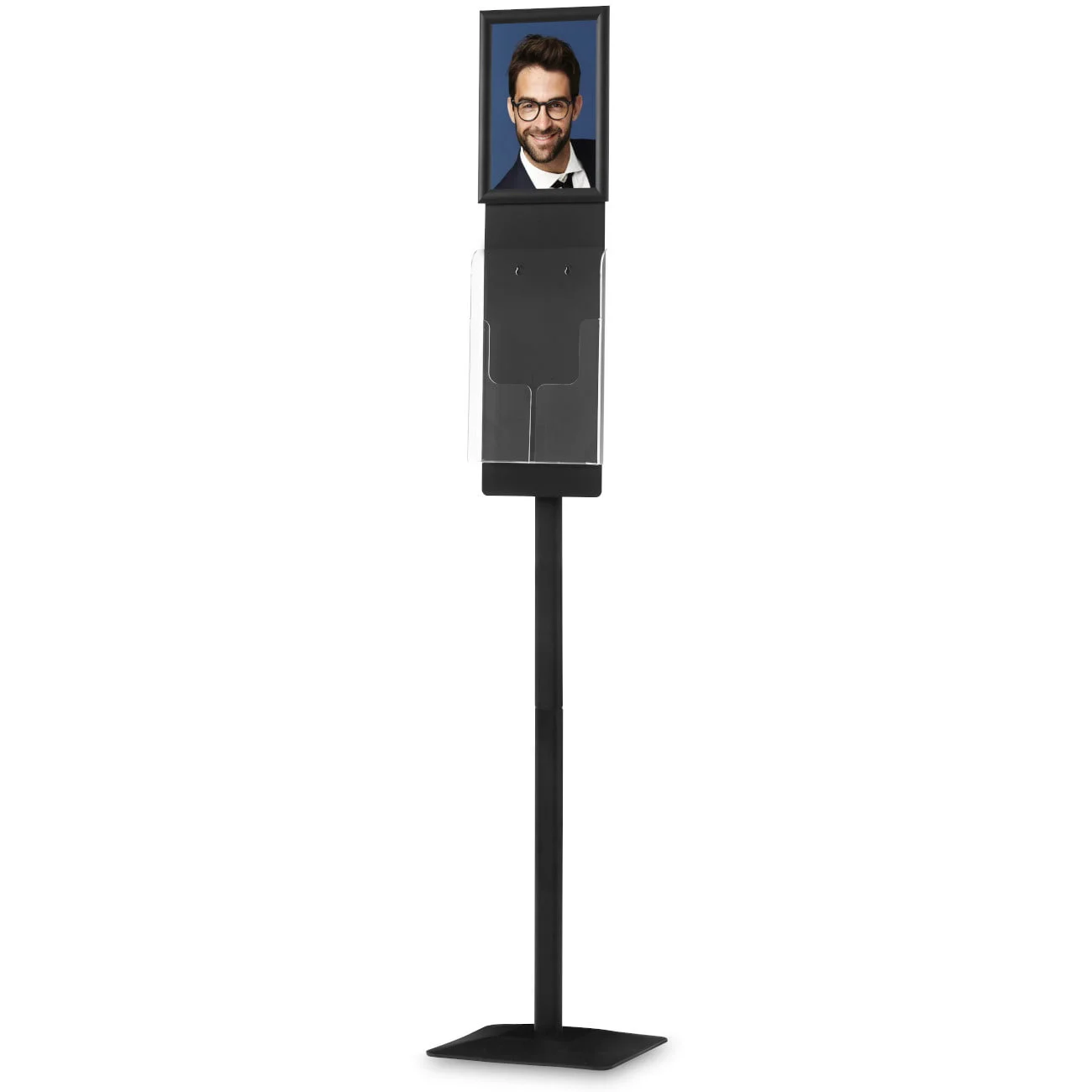 Virginia is a stand for brochures / catalogs made of solid powder coated metal in black mat. An additional advantage of this stand is the integrated information snap frame in A4 Dydis. Brochure kišenėlė made of very thick acrylic Medžiaga and designed for dydžiai up to A4.