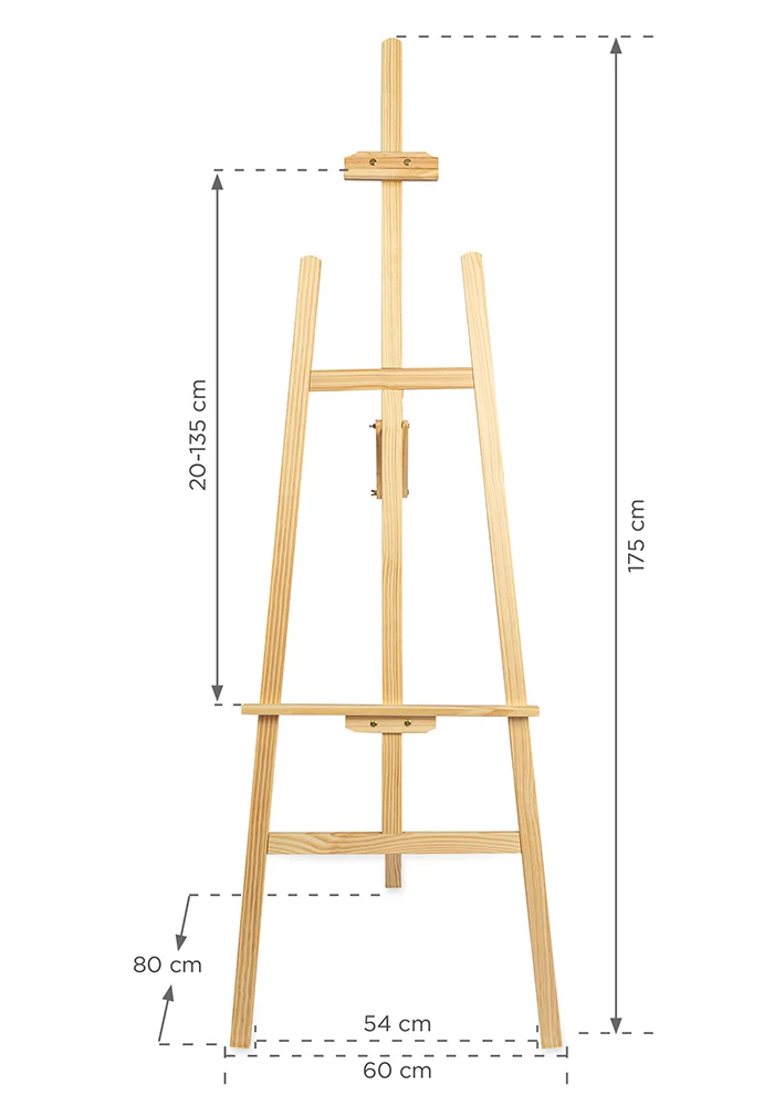 A wooden easel made of pine wood with a very stabilus and lengvas construction.